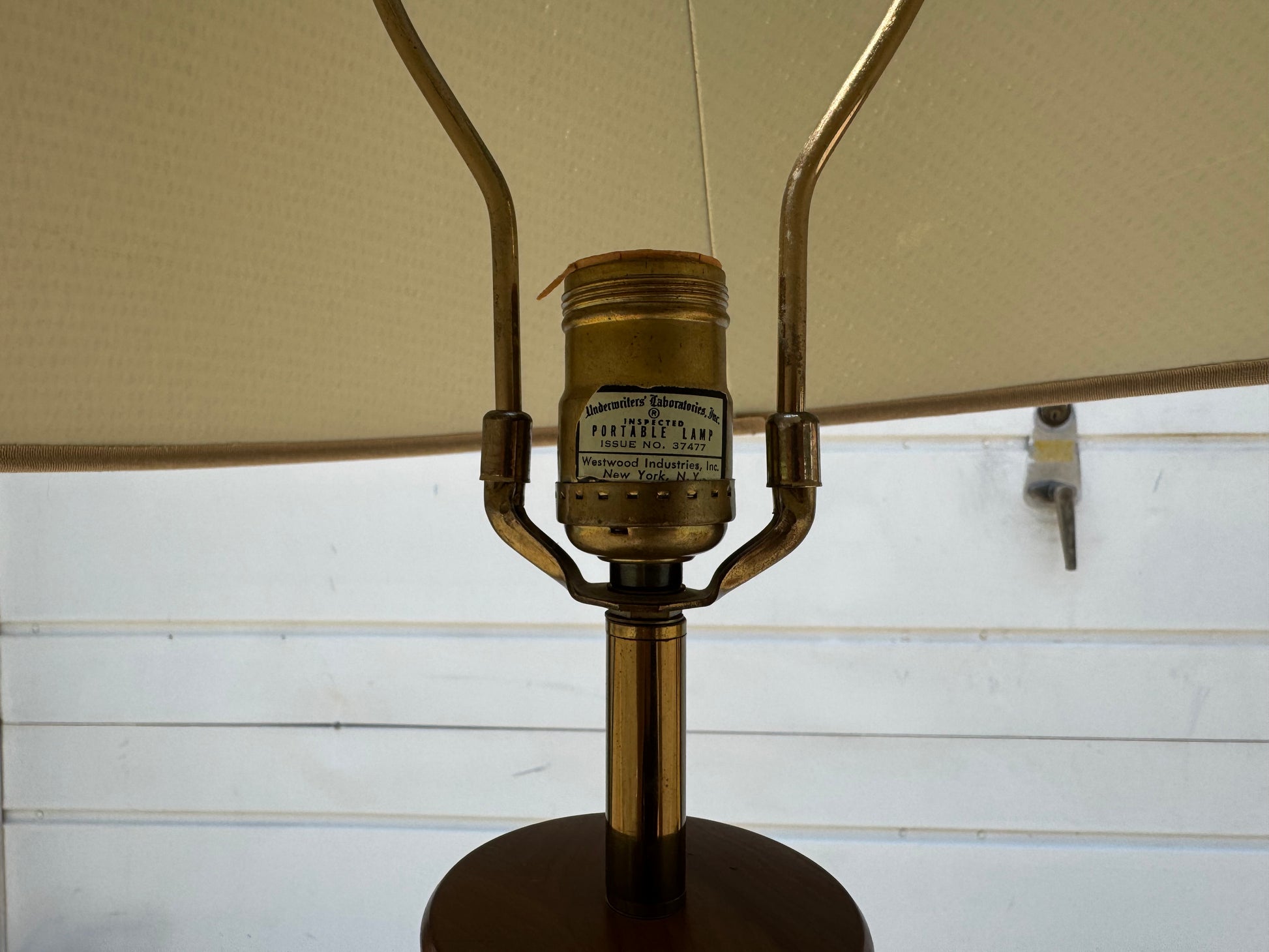 1960s Walnut Lamp Pair with Light Shades – 36” Tall ✨