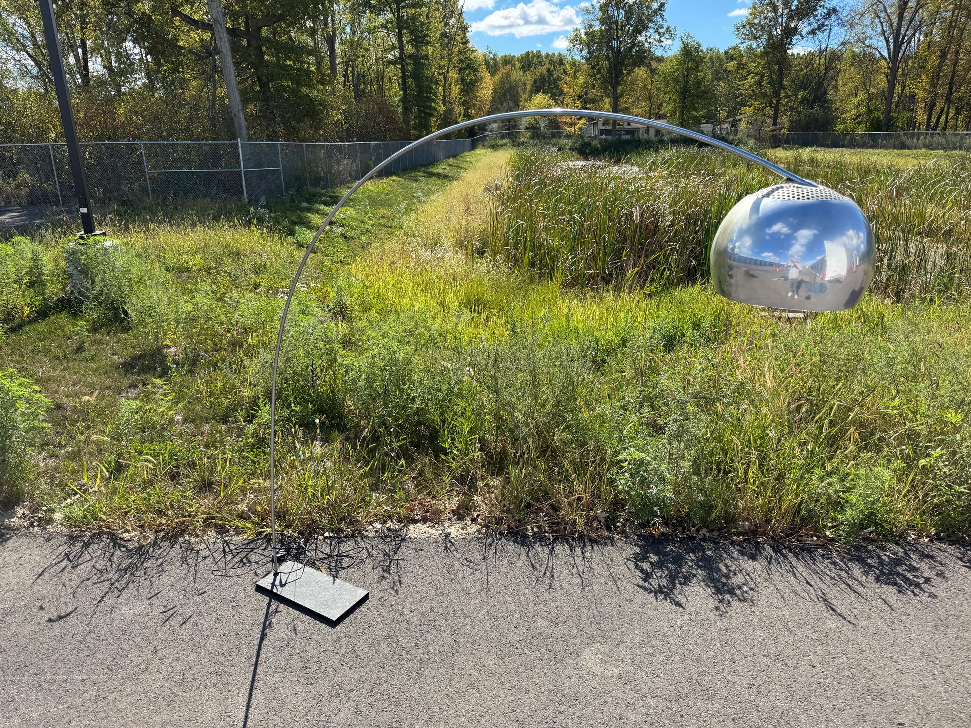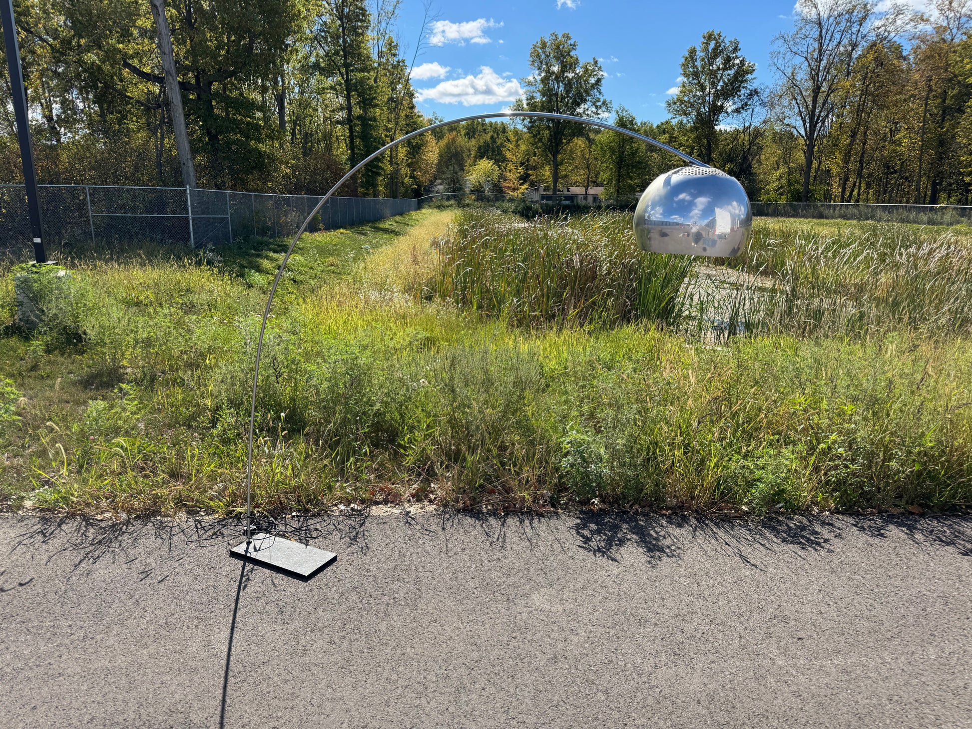 A timeless Arco-style arc floor lamp inspired by the iconic 1960s Italian design. Featuring a sleek silver metal finish, a gracefully curved arm, and a wide dome shade, this piece adds sculptural elegance and functional lighting to any room.