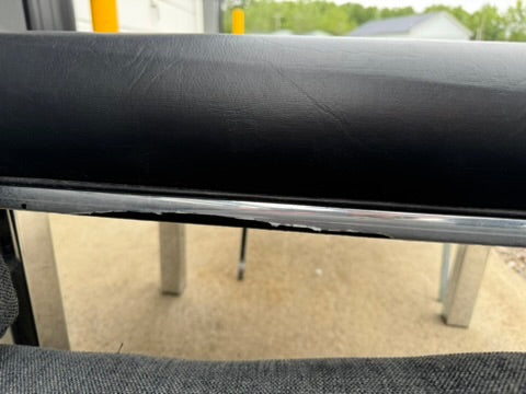 A sleek midcentury modern living room set featuring a chrome and black couch paired with three coordinating end tables. The couch has been updated with newly upholstered cushions for a fresh, comfortable feel, while the end tables showcase timeless MCM design.