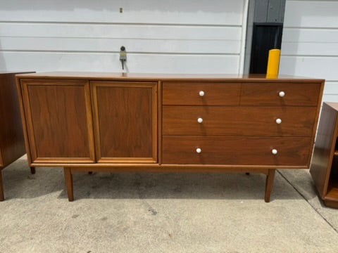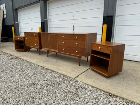 This dresser will be professionally refinished by Ohio Vintage upon sale, ensuring the wood’s rich walnut tone and original midcentury beauty are restored to the highest standard.