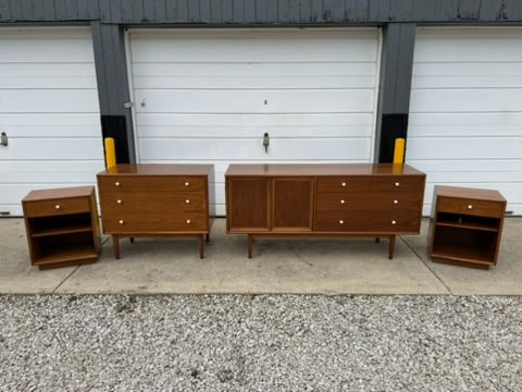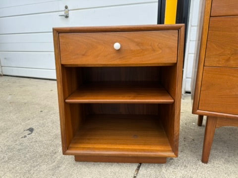 From the highly sought-after Kipp Stewart Collection for Drexel, this petite midcentury nightstand offers refined proportions and timeless design. Its compact size makes it versatile for use as a bedside table, side table, or accent piece.