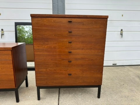 This exquisite Jack Cartwright Founders 1960 Edition dresser set combines timeless midcentury design with practical storage solutions. The set includes a lowboy dresser and a complementary chest of drawers, both showcasing clean lines, elegant proportions, and expert craftsmanship typical of the era.