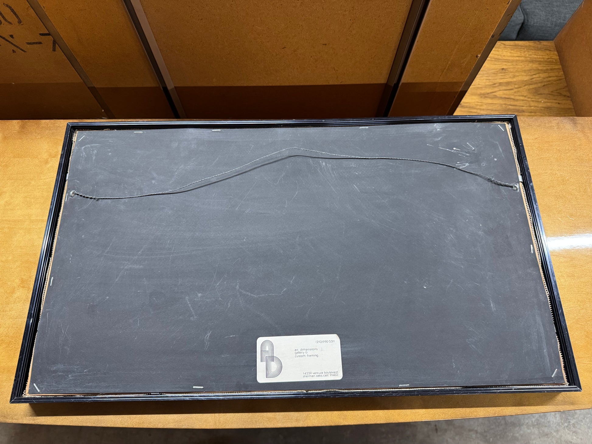 Add warmth and texture to your walls with this beautifully crafted vintage tapestry, elegantly set within a sleek metal frame. The woven textile features rich tones and intricate patterns, making it a unique statement piece for any midcentury or eclectic interior.
